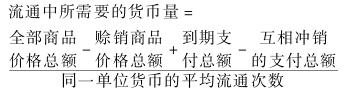 随著资本主义国家商品信用关系的发展,货币发挥支付手段的作用变得更加复杂化。于是将上述公式调整为: