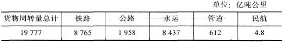 影响货物周转量的因素是货运量的大小和货物平均运输距离的长短。1986年我国几种主要运输方式的货物周转量见下表: