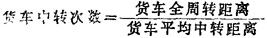 平均每个铁路货车在一次周转过程中,在沿途进行中转作业的次数。计算公式为: