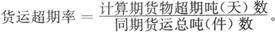 释义 | 货运超期率 一定时期内因承运人责任而造成货物超期送达的吨(天)数与货运总吨(件)数之比。 反映每吨(件)货物平均超期天数。综合表示运输的及时程度。 其计算公式为: 式中:分子项按超期货物吨(件)数乘超期天数计算,即:一吨(件)货物超期一天即为一个超期吨(天)数。 |
