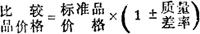 同一市场、同一时间、同一品种而质量不同的商品价格之间的差额。 是商品差价的一种。包括品种差价、品质差价(如新陈、鲜度差价)、等级差价、规格差价、型式差价(如式样、造型、型号差价)、花色差价、含量差价、包装差价、牌誉差价等。 商品质量的好坏有多种原因,如生产的自然条件和技术条件、劳动的熟练程度、原材料的好坏等。质量差价同消费者对商品使用价值的评价有直接的联系。 但当商品生产数量能够受价值调节时,这个差价就总是由生产中所耗费的社会必要劳动量的差异来决定。在商品生产受到自然或人为的垄断时,质量差价则取决于消费者的需求评价。 合理的质量差价体现了按质论价、同质同价、优质优价、劣质劣价的原则,对于促使商品生产者提高产品贡量,增加花色品种,促使商品生产符合消费者需要,保护消费者利益,都有重要作用。我国大部分商品制定各种质量差率来管理质量差价,质量差率是正负质量差价占标准品价格的百分比。 按国家规定的质量差率计算比较品价格的公式是:
