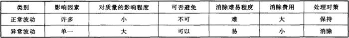 释义 | 质量波动 产品或过程的质量特性与设计规格或工艺标准的符合程度存在著的变异性。 质量波动包括同类产品之间的波动,即产品的均一程度;单个产品与规格给定的目标值之间的波动;工艺质量特性在不同生产线、不同批次、不同生产时间的稳定性等。 质量的波动性或变异性是一种普遍存在的客观现象,通常是不可避免的,但一般呈现出一定的规律性。 根据质量波动的特点和表现形式,可以将之区分为两种主要类型:即正常波动和异常波动。前者是由大量微小的、偶然的原因所引起的误差而造成的波动,具有一定的随机性,也称为随机波动;后者是由于系统性原因引起的系统误差而造成的波动。 在质量管理中,对于这两类波动所采取的对策是不同的。由于系统性原因而引起的波动是产品质量的大敌,应当查明原因,坚决消除;随机因素引起的正常波动是当前的工艺水准和多种影响因素综合作用的结果,作为眼前措施是将之控制在一个可接受的范围内,而从长远来看,则应通过持续的质量改进,通过采用新技术、新工艺、新设备而使质量水平更上一个新的台阶。 两类波动的特点如表9-2所示: 表9-2 |