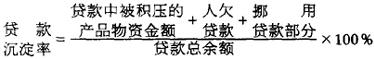 贷款中“死”资金与贷款总额之比。即百元贷款中不周转的资金占多少。计算公式为: