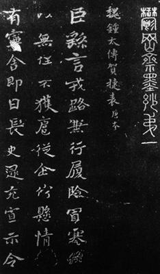 【作品赏析】: 钟繇(151-230),字元常,颖川长社(今河南长葛县东)人。 事曹魏,官至太傅。同张芝、王羲之、王献之合称书中“四贤”。擅隶、楷、行三体书,以楷书影响最大。真迹已无存,传世刻帖有《宣示表》、《还示帖》、《力命表》、《墓田丙舍》、《荐季直表》和此《贺尅捷表》等。 《贺 捷表》又名《戎路表》、《戎辂表》,为钟氏六十八岁时写。内容为得知蜀将关羽被杀的喜讯时写的贺捷表奏。 此系最能代表钟书面貌的一帖。《宣和书谱》说:“楷法今之正书也,钟繇《贺尅捷表》备尽法度,为正书之祖。”钟繇的书法,是较可靠的传世文人书中最早的作品。看此帖,其字尚未脱尽隶书笔意,但已属楷体。徐邦达先生认为,此帖的字体即羊欣在《采古来能书人名》中所提到的“八分楷法”。 此帖“获”字的末笔,“舍”字的第一、二笔等,隶字的特点都还十分显明。 钟繇的字以书写自然、风格古朴,以及章法结字的茂密幽深著称。这些,在此帖中都可约略见到。。  东汉 建安第十四年(219) 钟繇楷书 |