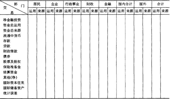 国际上通用的资金流量表有如下几种编制方法: ❶ 宏观资料分解法。在国民生产核算的基础上,充分利用已有的专业统计资料和补充、辅助资料,在规范性强的总量指标(如GNP、财政收支等)的控制下,对上述各种资料进行整理、分解、调整、审核,而后进行组装与平衡。 ❷ 账户方式。充分考虑同国民经济其他核算协调的同时,通过编制各机构部门的收入与支出账户、投资储蓄账户及金融账户编制资金流量表。 ❸ 调查法(亦称微观资料汇总法)。组织调查表满足编制资金流量表对资料的要求。 ❹ 资产负债存量法。利用各机构部门的资产负债表,对各交易项目的期初期末资产负债存量相减,得出该期内各交易项目的资产负债流量,将这些流量资料按资金流量核算的要求进行分类调整,编制出资金流量表。在具体操作中,通常根据实际需要,以其中的某一种方法为主,其他方法为辅,互相结合使用。中国目前资金流量表的收入分配部分主要采用宏观资料分解法,金融交易部分主要采用账户法和资产负债存量法。 表13-11 资金流量表(金融交易部分)