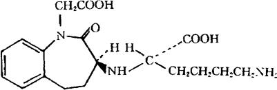 C18H25N3O5=363.41 CAS-109214-55-3 CAS-97878-35-8 [(S-(R*,R*)]*3-[(5-氨基-1-羧戊基)氨基]-2,3,4,5-四氢-2-氧代-1H1-苯并吖庚因-1-醋酸。 3-[(5-Amino-1-carboxypentyl)amino]-2,3,4,5-tetrahydro-2-oxo-1H1-benzazepine-1-acetic acid-,[(S-(R*,R*)]. N-[(3S)-1-(羟甲基)-2,3,4,5-四氢-2-氧化-1H-1-苯并吖庚因3基]-L-赖氨酸。 N-[(3S)-1-(Carboxymethyl)-2,3,4,5-tetrahydro-2-oxo-1H-1-benzazepin-3-yl]-L-lysine. 酶抑制药,抗高血压药。 Libenzapril,CGS 16617. INN,USAN.