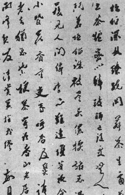 【赏析】: 此行草书以中锋用笔爲主,藏锋逆起,熟练自然,多数点画虽是露锋,但能使笔入纸,点线沉著,绝无飘忽轻佻之弊。在圆转流畅的笔调中讲究转折的顿挫,深得“锥画沙”的妙理。这样使字形成一种猛锐的阳刚之气。此作品用笔的又一特点,即在爽快的挥毫中,时有涩笔夹入,使墨色乾湿浓淡分明。通篇观之,给人以疾迟、轻重的强烈节奏感。另外,字的大小也有变化,凡较大的字,用重笔,反之,较小的字,笔画较轻,墨色平淡。字的大小、轻重、迟疾相间,使轻重、快慢形成十分鲜明的对比。由于字形能做到左右上下互相照应,故自然成行,显得生动活泼。 |