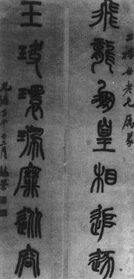 释义 | 赠二楞世老兄七言联 【简介】: 淸·王懿荣书。纸本。行书。七言联一则。凡上下联正文十四字,款十六字,共三十字。刊于《历代楹联名迹》。 【赏析】: 如果不是王懿荣在作爲药材的“龙骨”上发现甲骨文,那么“甲骨文”的发现可能还要推迟很多年。这是王懿荣对文字学的贡献。 作爲文字学家的王懿荣,其书法也颇有可观。这幅篆书联“飞龙凤皇相追逐,玉玦环珮靡从容”便是明证。 篆书这种书体在淸代得到了复兴。淸代写篆书的人很多,除了那些耀眼的名家外,还有一大批擅写篆书的好手。过去,一直以“玉箸”爲正宗,并且大多採用元吾邱衍的法子,把笔尖烧掉或剪掉笔锋。至邓石如出,面目爲之一新。他用长锋羊毫挥洒自如,起笔处往往可见笔锋,结体气势磅礴,一改以前恹恹无生气的面目。从此篆书的表现力大大加强,形成了崭新的风格。 王懿荣此联结体略方,用笔老辣。起笔处逆锋藏头,收尾凌空收势,致使每个点画皆圆头方尾。转折皆提毫暗过,深得“折钗股”遗意,整幅作品在圆润之余又见淸俊。结体上也很有特点,右偏旁都收缩,左偏旁伸长舒展,如“玦”、“珮”、“追”诸字,在严整的体势中增添了动感。但“龙”和“珮”的左边过分扭屈,有点做作,但小疵并不影响整幅神采。 |