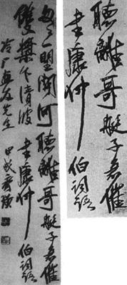 【简介】: 现代·齐白石书于甲戌年(1934)。纸本。行书。凡三行,共三十四字。刊于日本靑山杉雨《明淸书道图说》。 【赏析】: 白石篆书取周秦两汉精华,尤得力于《三公山碑》、《天发神谶碑》,最后形成了自己的风格。 白石行书,略似米芾体势,用笔老辣,功力深厚。从这幅行书立轴中,可以略见一斑。字与字之间,或断或连,或开或合,或收或放,任其自然。大有一泻千里之势,纵横八荒之槪,气势贯通,苍劲豪迈。 另外,白石老人无论是书、是画或是印,都有一种总的精神相贯穿,可以见他以书入印,以画入书,相互依存,相互补益,形成了白石艺术的博大宽宏的特色。