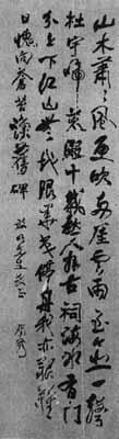 【简介】: 近代·陈独秀书。纸本。草书。凡四行,共六十四字。刊于《民国时期书法》(中)。 【赏析】: 陈独秀行书诗轴,得自北碑体系;但该书骨气懦弱,起码是他不擅以羊毫赢得笔力吧,所以如盲人手执火炬。 此作除“山木、舟、日、苍苦”等寥寥数字外,其余行笔是那样的拖沓。虽说是应手而来,书写自如,但却似老马陷足于泥淖,不胜蹇滞挣扎之苦。“书,心画也”。其点画的荒率、字势的沉笨、神态的疲敝,通透著作者精神頽唐、矛盾、混乱、焦烦、无可奈何等複杂情愫交织在一起的苦闷心境。“独秀”、“艰难“四字,在这样一篇衰残散乱的荒败景象中,是愈显其老迈和伶仃了……