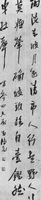 释义 | 赠啸岑四兄诗轴 【简介】: 淸·陈鸿寿书。纸本。行书。七言绝句一首。凡三行,共三十六字。128×24.8cm。辽宁省博物馆藏。刊于日本《中国书道全集》(八)。 【赏析】: 陈鸿寿是一个诗书画印兼长的艺术家,在书法创作方面,尤擅隷书。他从汉代摩崖石刻中汲取精华,形成了趣味怪异的书法风格。 陈鸿寿的行书,虽不像隷书那样“怪”,但追求趣味,仍是他的创作宗旨。行书很容易写得浮滑,陈鸿寿得力金石功夫的深厚,用笔如用刀,笔力极好。又因他是画家,所以,书法创作也以画意去构思,有意识地分布墨色的浓淡,笔触轻重交替变化,结体正斜错杂,又注意章法的疏密。所以,仍能藏“怪气”于平常中,无论整体还是局部,都是耐人寻味的。 |