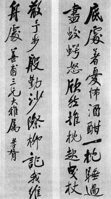 【简介】: 近代·郑孝胥书。纸本。行书。凡八行,每行字数不一,共八十九字。刊于《民国时期书法》(下)。 【赏析】: 沙孟海在《近三百年的书学》中对郑孝胥书法的评价是十分切当的。这通行书屏,虽不算郑孝胥的最佳代表作,但也不失爲他的好作品,并应证著沙孟海的评价。作者的襟度、才情,决定了他的书作博大自然的内美。就其可视形象而言,他的用笔多一拓直下,豪纵劲健,字势松灵伟美,节奏起伏腾蕩,通篇气象宏伟淸劲。他写字的轻松自然,正如有伟力者之举重若轻,平易超然似不在意于写字。郑孝胥书法的“雄大”,比之于颜眞卿的“雄大”,前者雄而能秀,后者雄而愈峻;前者如天地之大,使人不觉其大,后者森严肃穆,使人觉其大而生敬畏之心。郑孝胥的这种博大超逸,不独以形迹成之,要之,非精神、器度进入“无障”的境界而不可得。 顺便要提到的两点是:其一,此屏较之郑氏其它精作,略有飘洒有余,沉劲不足之感。在书法艺术中,对于疾与涩,沉著与痛快的矛盾统一的恰如其分的把握,本来是一大难题,即对于书法名家而言,也未尝不如此。其二,在书法的品评中,对于书品与人品的关係,不可以作机械理解。而一个人的政治历史与他的个人品质,也是不能简单地划等号的。