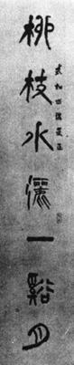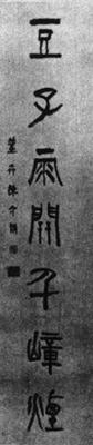 【简介】: 淸·陈介祺书。纸本。篆书。七言二句,另行书题款两行,共二十五字,138.2×30cm。刊于日本《书道全集》(二十四)。