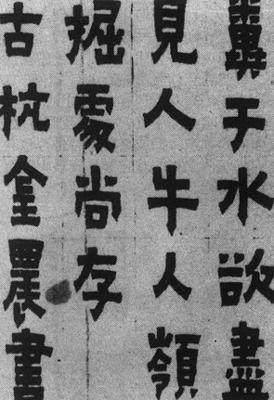 【简介】: 淸·金农书于乾隆十年(1745)。绢本。漆书。凡八行,共一百二十八字。119×48cm。刊于《艺苑掇英》(二十四)。 【赏析】: 金农在深研碑学的基础上创造了名爲“漆书”的新隷法。据他自己说是“截毫端作擘窠大字”。毛笔截去毫端则近于扁平的油画笔,所以写来笔画两头齐整,行笔时粗细几乎没有变化,一改隷书一波三折、蚕头燕尾的典型笔法。这种笔法在汉简上可以找到雏形。金农未必见过此类简书,但他对五凤石刻、汉碑,特别是《国山碑》、《天发神谶碑》下过功夫,或由此而暗合前人所爲。  这件作品点画尾端很少挑起,大部分点画与今天的黑宋体相似,亦觉扁平,不过字结构颇有特色,框形构件都上宽下窄,但各字又不尽按此法处理,而是根据各字结构的特点进行组织,或长或短,或宽或窄,各尽其态。—当然,整个作品给予人们的还是那个金农,那个有不成功的作品,但是没有缺乏个性的作品的金农。 |