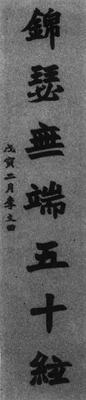 【简介】: 淸·李文田书于戊寅(1878)二月。纸本。楷书。七言集联一则。凡上下联十四字,款十八字,共三十二字。刊于日本《明淸书道图说》。 【赏析】: 李文田作爲晚淸的名书家,其传世作品却未能得到广爲宣扬。这件楷书对联便向我们展示了书家的一个风格侧面,它单纯朴厚,凝重圆润。我们考察有淸以来习碑诸家的书作可以发现其中有相当一部分人是在力求北碑的雄强风骨,却难免给人以霸悍刻露之嫌,并由此而失去书写的特点。李文田则不然,他注意强调用笔的起承转合,以此来增强书写的意趣,并从中参之以唐楷笔法,于直率平和之中还流露出些微动感,从而使我们看到了碑学与帖学两大派系的相互交融的效果。   但是,同时也应看到,由于书家在努力追求含蓄圆润的效果,力避霸悍孔武之弊,于是不免出现矫枉过正的感觉,使其显得力度不够。好似温呑水,淡则淡矣,但不能给人以心脾爽然精神振奋的感觉。可见创作中尺度与火候的把握是一个难而又难的问题。 |