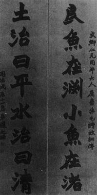 释义 | 赠文卿仁兄同年大人八言联 【简介】: 淸·赵之谦书于同治七年(1868)。纸本。楷书。八言联一幅。上下联正文十六字,款二十七字,共四十三字。165.1×43.7cm。刊于日本《书道全集》(二十四)。 【赏析】: 此幅作品是赵之谦三十九岁时的力作。赵之谦在楷书方面,三十岁以前学颜眞卿,以后又主攻北碑,最后以魏碑取胜,并定体于魏碑。其书碑最大特点是:重气势,平画宽结,显示他在颜字方面的深湛功力;行笔灵活自如,点划不带雕琢气息;风神旣存碑意,又有所谓“颜底魏面”的自家面目。在这一点上,赵之谦是超过他的一些师碑的同辈和前辈的。他的碑字之所以能够达到如此高的造诣,除了他的广博学识和卓越的艺术才华之外,更主要的是他在细审默察中领悟到:碑上的字有刀与笔两种不同的效果,如点画的起迄处,往往呈现出三角形或方的刀切状,这显然是刀刻效果,不是书写笔意。这一领悟终于使他在师法魏碑过程中敢于突破,勇于创新,大胆地师其笔而不师其刀,除了表现出魄力雄强、点画峻厚的整体气势美以外,而且还寓圆于方、寓柔于刚,表现出婉转淸秀、神采飞动的端庄之美。 虽然赵之谦的北魏楷书,显示了他不仅得颜书之精髓,而且把北魏书也写活了,创造出自己的风格,但是在他的北魏书中时现出一种浮烟涨墨的郁勃之气。这也许就是他的书品,他的人品,他的艺术生命、灵气、风格之所在。 |