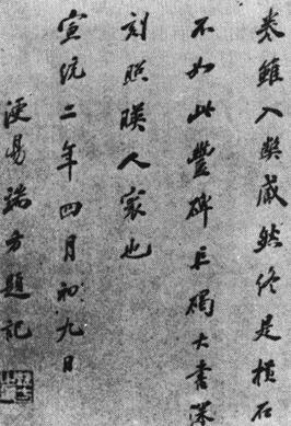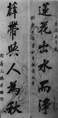 【简介】: 淸·端方书于宣统二年(1910)三月。纸本。行书。六言对联一则。凡上下联十二字,款二十一字,共三十三字。刊于《历代楹联名迹》。 【赏析】: 端方此幅行书作品取法“二王”,写得很规矩,法度森严。就用笔而言,点画平实、浑厚,骨力洞达,起落转侧,如断金切玉,乾凈明丽。行楷相间,有的字完全是楷书,却以行书的用笔出之;有的字是行书,却也有楷书的间架和功底。说明虽写行书,却有很深的楷书功力。如下联中的“与”字,完全是草意,因此虽工而不板,静而能动。就结体而言,疏密有致,疏处不觉空阔,密处不容透光,上疏下密,给人以稳定感。   此外,値得注意的是:此幅作品乍看起来似乎平淡无奇,虽然每个字的结构都各有自己的特徵,但没有什么过犹不及的地方,也就是没有什么需要特别强调的或者人爲雕饰的地方,字裏行间透露出平和简静的气息,这一点正是王书的重要特点,也正是这幅作品难能可贵之处。 |