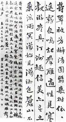 释义 | 赠春渠先生诗轴 【简介】: 近代·瞿宣頴书。纸本。行书。凡五行,共一百二十八字,刊于《当代名人书林》。 【赏析】: 自阮元南北书派之论后,淸末康有爲大力推崇北碑,北碑雄强大度,肆意开张,其实南帖未必全是娟秀之作,学书者倘能融会北碑南帖之精义,自可别具一番面目,观瞿宣頴此帧行书是不难得出这种结论的。 此帧诗轴,旣融北碑之刚,又兼南帖之丽,方笔圆转,奇趣盎然,通篇一气呵成,气韵纯厚,一行中有意安排一两个大字,打破了单调的行气平衡律,更在字法上或取纵势,或取横势,给人以非如此安排而不可之感。表现了书写时不是被字所支配,而是书写者本身驾驭了笔墨,因而越读越有味,眞眞让观赏者爱不能弃,领略到一种特殊的意境美。 |