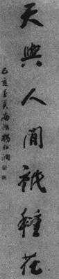 【简介】: 淸·杨伯润书于光緖二十五年(1899)春暮。纸本。行书。七言联一则。凡上下联十四字,款十七字,共三十一字。刊于《历代楹联名迹》。