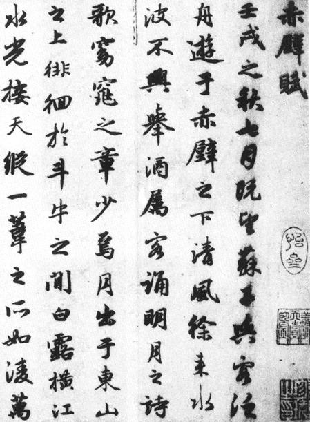释义 | 赤壁二赋帖 【简介】: 元·赵孟頫书。纸本。行楷书。共九百三十五字。册页二十一幅。每幅均27.2×11.1cm。前副页,墨笔苏轼小像。均27.2×11.1cm。台北故宫博物院藏。刊于《故宫历代法书全集》(十四)。 【赏析】: 《赤壁二赋》是赵孟頫行书作品中比较得意的一篇。综观全篇,浓郁的书卷气扑面而来,其精巧娴熟的笔法和圆润秀美的结体,无不给人以美的享受,使人自然地联想到作者当时悠然自得,从容自如的创作心境,同时也可想像出赵氏对东坡此文的垂爱。 此书法度严谨,字体秀丽,笔法圆润流畅,起笔藏露交错,运笔迟速分明,转折方圆结合,收笔锐钝错落。通篇字形的大小、结构及其笔画、特点都服从于首行“赤壁赋”三字。前后呼应,爽朗有致,充分展示其熟练的笔法技巧。此书点的写法就很特别,姿态繁多,长点短点变化无常,藏露多取侧势,信手点来,俯仰自如,饶有生趣,如“赤”、“赋”、“之”、“不”等字。横的写法则是竪著下笔,中间稍徵提笔带过,收笔迴锋,整个运笔沉稳果断,略爲向右上取势。数横排列则有露锋笔画,常可窥见其用笔的动作。短横有的下笔较重,如“壬”、“于”、“白”;长横有作覆舟状的,中部略凸起,如“光”、“立”字。他的“之”字,就是明显的“三曲之”,最后一捺,一波三折,曲得别緻,线条具有微妙的变化。同样,他的竪、鈎、撇、捺等等也都很有特色。 赵孟頫的书法继承了晋唐以来的传统,但他所处的时代毕竟与古人不同,因而其书法面貌自然与古人有明显的差异。他的作品多半是从实用的角度出发,爲封建帝王和宗敎服务,故其作品总的倾向于实用与艺术并重一路,但亦有极度空灵,追求纯艺术意趣的佳制。《赤壁二赋》就是他追求艺术情趣的审美心理的体现。从这点我们似乎可以感到,在欣赏书法艺术中,我们旣要容纳那种“曲高和寡”的“阳春白雪”,也不应排斥这种平易近人,旣具艺术内涵又有实用价値的作品。 |