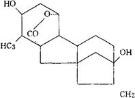 C19H22O6=346.37 CAS-77-06-5 2,4α,7-三羟基-1-甲基-8-亚甲基-赤霉-3-烯-1,10-二羧酸-1,4α-内酯。 2,4α,7-Trihydroxy-1-methyl-8-methylenegibb-3-ene-1,10-dicarboxylic acid-1,4α-lactone. 激素类药(农、医两用)。用于胃及十二指肠溃疡、再生障碍性贫血等。 赤霉素,九二〇。 Gibberellic Acid,Gibberellin A3. 赤霉酸片,赤霉酸生发水(九二〇生发水),赤霉酸注射液,赤霉酸软膏(九二〇软膏)。 MI.  |
