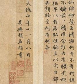 释义 | 赵孟頫 赵孟頫(1254~1322年),浙江人,是元代最显赫的画家之一,也是最卓著的书法家之一,在中国书画史上具有广泛影响。 他当官后屡经升迁,成为元朝炙手可热的高官,加上他在诗书画论上的全面才识,也就顺理成章地成了元代文人画的领袖人物。他的绘画标榜复古,提倡笔墨法趣,刻意摹唐人笔意;他的书法最佳为楷书、行书,集晋唐书法之大成,有“赵”体之称。 赵孟頫行书 |