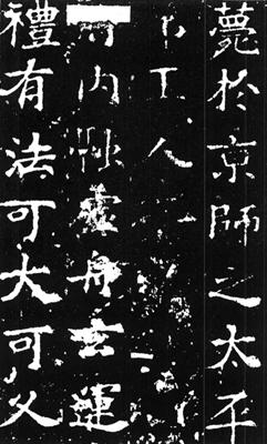【简介】: 全称《淮安定公赵芬残碑》。隋开皇五年(585)立。正书。二石:一石存十三行,行三十字。一石存十二行,行二十九字。66.6×33.3cm。在陕西西安。日本《书道全集》著录。 【集评】: 康有爲《广艺舟双楫》:“《赵芬残石》字小数分,甚茂重,与魏碑《惠辅造像》同,字小而体画密厚。可见古人用笔必丰,毫铺纸上,岂若《温大雅碑》之薄弱乎!”又:“有洞达之风。” 【赏析】:  《赵芬残碑》和魏碑的“魄力”、“奇趣”相比较,可以明显感觉到从容沉静的韵致,但和唐楷相比,又显得自由一些,少一点精巧,多一点厚朴。隋代楷书上承南北朝,下啓唐楷诸家。从《赵芬残碑》的用笔中可以看出某些六朝碑刻的影响,但与初唐书风更爲接近。历代书家推崇隋碑者甚衆,认爲学书者“以隋爲祖、以唐爲宗”,则“不致染悍戾之习,亦不蹈柔媚之讥”,可供学习楷书者参酌。 |