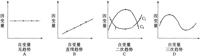 释义 | 趋势分析 寻求自变量与因变量之间的关系类型的统计分析方法。 适用于自变量练习次数,学生的年级、年龄等具有连续的量的变化的数据。当研究者应用“方差分析”等方法确定自变量对因变量有显著主效应之后,如果还希望进一步探讨随著自变量的增减变化,因变量将呈现何种变化趋势时,就需要运用趋势分析。由于趋势分析是以相同变量的重复测量数据为统计对象,因此应采取重复测量的研究设计来收集数据。比如,研究者希望探讨初中学生接受快速阅读训练的次数与其阅读速度之间的关系类型,那么可以测量未受训练、受训1次、受训5次、受训10次等受训次数不等的各类初中生的阅读速度,通过趋势分析即可回答受训次数(自变量)与阅读速度(因变量)之间是否存在一种变化趋势及这一趋势是直线性的还是非直线性的,以及最适合几次模型等问题。 经由趋势分析得出的变量关系类型常见的有3种:直线趋势(1inear trend)、二次趋势(quadratic trend)和三次趋势(cubic trend)。其中,直线趋势指因变量随自变量的增加而增加的趋势;二次趋势指随自变量变化,因变量呈现先降低而后增长,或先增长而后降低的变化趋向;三次趋势则指当自变量变化时,因变量先增长后降低而后再增长的现象(见附图)。进行趋势分析时,通常首先进行变异数分析,确定自变量对因变量的效应,然后绘制因变量的变化曲线图观察因变量的变动状况,并进一步采用横向效应矩阵法(cross impact matrix method)等数学方法拟合数据与假设趋势类型。 (选自欧沧和、李茂能《社会科学研究法辞典》,复文图书出版社,1986。) |