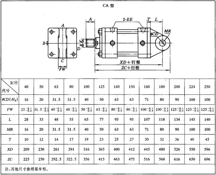 (4)生产厂 W70/140L-1系列轻型拉杆液压缸的生产厂有武汉液压油缸厂、榆次液压件厂和大连液压件厂(为同类型产品)。 注:大连液压件厂产品名称和型号 单杆式工程型液压缸——MJ型 双杆式工程型液压缸——MW型 具体性能参数及外形安装连接尺寸可参阅产品样本。 |