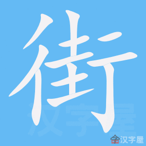 街,篆文=(行,四通的大道)+(圭,两个土, 表示建筑工事),造字本义:城市两侧有相关建筑的商业大道。
