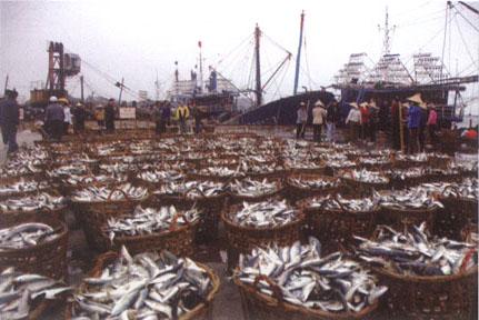 释义 | 近海水产资源 由于多年的过度捕捞,中国近海的水产资源呈连年下降的趋势,产量减少,鱼体变小。 近年来,在渤海、东海和南海的近海区域分别实施了增殖放流和投放人工鱼礁的措施,以增加自然海区的水产资源,取得了一定效果。目前中国养殖的鱼、虾、贝、藻类共计有60余种,主要品种有海带、牡蛎、珍珠贝、鲍鱼、紫菜、对虾、海参、扇贝、鲻鱼等。2005年中国海水养殖产量达1384万吨,跃居世界首位。 渔业大丰收 |