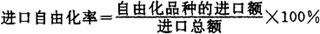 本世纪50年代至70年代初,一些西方国家根据《关税与贸易总协定》和经济合作与发展组织的有关规定,逐步取消进口数量限制。到60年代初,主要西方国家之间的进口自由化率已达到90%以上。计算进口自由化率的公式为: