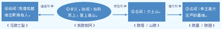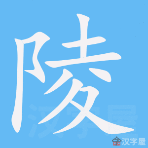 字源解说 陵,甲骨文 = (阜,盘山石阶)+ (大,跨步登山的人)+ (止,前行),表示沿石阶登山。有的甲骨文 明确石阶 的形象,省略“止” 。造字本义:拾阶而上,登上高山。金文 、 严重变形。篆文 综合甲骨文字形 与金文字形 。隶书 将篆文的“阜” 写成“左耳旁” ;并误将篆文字节中的 写成 。当“陵”的“登山”本义消失后,用同音字“凌”代替。 附 文言版《説文解字》:陵,大阜也。从阜,夌聲。 附 白话版《说文解字》:陵,高大的山阜。字形采用“左耳旁”,“夌”是声旁。 引申线索