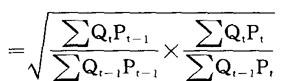 用同样方法计算从t1到t+1的 从t+1到t+2的 一直计算到#。 第二步,将算得的各时期的费雪指数 余可类推。 从上述计算程序和方法可见,连锁型物量指数考虑到各时期内相对价格的变化,因而不会发生权数偏误,能够较准确地反映实际GDP的变动趋势。 编制连锁型价格指数的程序和方法与编制物量指数类似。 就编制连锁型GDP价格指数而言,只要把公式中的Q和P换位即可。 当前西方国家统计机构编制综合经济指数,有些已废止固定权数指数,采用连锁型加权指数(如法国和美国);有些兼用固定权数指数和连锁型加权指数(如荷兰和挪威)。 |