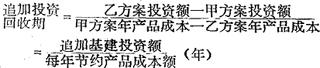 释义 | 追加投资回收期 比较和选择建设方案时所必须使用的表示相对经济效果(即比较经济效果)的指标之一。 表示需要经过多长时间,才能用降低成本的节约额(节约的经营费用)来抵偿追加的基本建设投资额。计算公式为:假定:乙方案的基建投资大于甲方案,甲方案的产品成本大于乙方案。 追加投资回收期指标的具体运用,参见“投资效果系数”。 |