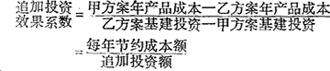 表示每追加一个单位的基本建设投资所能获得的产品成本降低额。假定:乙方案的基建投资大于甲方案,甲方案的产品成本大于乙方案。