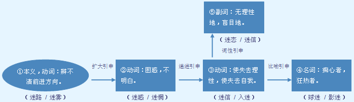 释义 | ![]() ❶分辨不清,失去判断能力。作带宾、带补谓语。宾语多是“方向”“道路”一类事物。 他们在林中~了路|在雾蒙蒙的海面上,舰艇~了航向|注意,千万别~了方向|在云南石林我~过两次路|这一带我~不了路。 ❷对某人或某物过于爱好而沉醉。 a.常带上趋向动词“上”、动态助词“了”作带宾谓语。 小茜简直~上了迪斯科音乐|孩子们都~上了那个和蔼可亲的女教师。 b.活用为名词,作“入(了)”“着(zháo)(了)”的宾语。 老爷爷讲的故事生动极了,孩子们听着听着,都着了~|她看小说已经入了~。 ❸使迷惑或陶醉。常作带宾、带补谓语。 景色~人|财~心窍|白骨精~过猪八戒|这小子被杏花姑娘~住了|这些花花绿绿的小人书把孩子们全~住了|他~上桥牌了。 沉醉于某一事物的人。常用作语素构成合成词。 球~|戏~|舞~。 【词语】 迷航 迷魂阵 迷津 迷离 迷恋 迷路 迷漫 迷梦 迷途 迷雾 字源解说 米,既是声旁也是形旁,是“眯”的省略,表示看不清。迷,侯马盟书 ![]() ![]() ![]() ![]() ![]() ![]() ![]() 附 文言版《説文解字》:迷,或也。从辵米聲。 附 白话版《说文解字》:迷,因失去方向而困惑。字形采用“辵”作边旁,“米”作声旁。 引申线索 ![]() 【字族索引】 迷 米 【同音字】 mí |