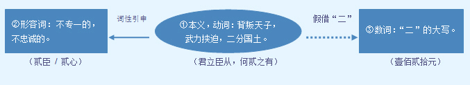 字源解说 二,既是声旁也是形旁,表示一和三之间的正整数。貳,金文 = (戊,战刀、武力)+ (貝,疑为“鼎”的误写,代表国家政权)+ (二,双份),表示不忠于君,武力挟迫分割政权。造字本义:动词,背叛天子,武力挟迫,二分国土,双君并立。篆文 将金文字形中的“戊” 写成“弋” 。隶化后楷书 将篆文字形中的 写成 ,将篆文字形中的 写成 。俗体楷书 省去正体楷书中的“貝” ,突出了数字“二” 。 附 文言版《説文解字》:貳,副、益也。从貝,弍聲。弍,古文二。 附 白话版《说文解字》:貮,额外收入。字形采用“贝”作边旁,采用“弍”作声旁。弍,这是古文写法的“二”。 引申线索