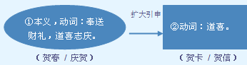 字源解说 贺,金文 = (贝,钱财)+ (又,操持)+ (口,恭维赞美),表示送礼志庆。造字本义:奉送财礼,向对方道喜志庆。篆文 调整结构。 在现代汉语词汇“庆贺”中,“庆”与“贺”近义,但在甲骨文字形中有所区别:“庆”强调赠送礼物,以示纪念主人的称心事件;“贺”强调送礼的同时,现场说好话恭维主人。 附 文言版《説文解字》:賀,以禮相奉慶也。从貝加聲。 附 白话版《说文解字》:贺,以礼物捧场庆祝。字形采用“贝”作边旁,“加”作声旁。 引申线索