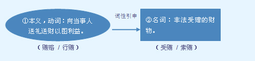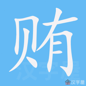 贿,篆文=(贝,钱财)+(有,持肉,在古代肉是大礼),造字本义:向当事人送礼送财以图利益。