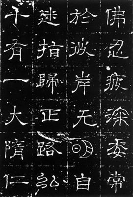 【简介】: 隋仁寿二年(602)八月刻。隷书。十六行,行十六字。38×37.5cm。盖阳文篆书“大隋处仕郭君墓誌铭”三行九字。河南洛阳三里桥出土。赵万里辑入《汉魏南北朝墓誌集释》。 【赏析】:  隋隷已无汉隷恢宏的气度,无论从艺术格局、艺术气息以及技法来讲都略逊一筹。但此墓誌仍有一些特点:它自我爲古,直取篆书结体的某些特点而化入书中,它借当时已齐备的楷法融入隷中,由于时代审美趣味的转移,此墓誌弃汉隷雄浑沉酣的特点,而成妍美细挺的新姿。 我们从墓誌中可以看到:细线界格使章法趋于平稳工整,作者爲避免章法上的平淡,尽量在有限的方格空间内求变化。但誌中有的结体和笔意不太统一,两个“明”字和第五行的“大”字、十行的“息”字、九行的“乐”字以圆转的篆书出现在誌中,颇感忽然和不协调,有拼凑的感觉。倘无风化破损、石花杂呈其间,拼凑和不协调的感觉还会更强烈些。 墓誌盖以圆厚的线条取篆法,结体紧密,有强烈的雕塑感,它和墓誌书法粗细的对比强烈。但墓誌盖书法不管是用笔还是艺术趣味都要差一些,我们只能把它看作是一件类似图案的装饰品。 |