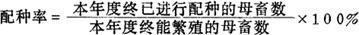 配种率是指本年度终已进行配种的母畜占能繁殖母畜数的百分比。它反映能繁殖母畜参加配种的实际情况和配种工作的组织情况。计算公式是: