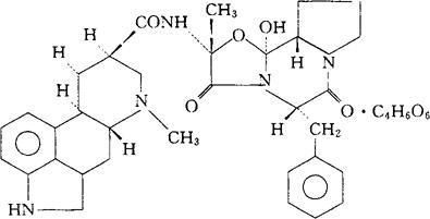 C33H37N5O5·C4H6O6=733.76 CAS-511-12-6(dihydroergotamine) (5′α)-9,10-二氢-12′-羟-2′-甲基-5′-(苯甲基)-麦角曼-3′,-6′,18-三酮,(+)-酒石酸盐。 (5′α)-9,10-Dihydro-12′-hydroxy-2′-methyl-5′-(phenylmethyl)ergotoman-3′,6′,18-trione,(+)-tartrate(salt). 抗肾上腺素药。用于偏头痛急性发作及血管性头痛,肢端动脉痉挛、冠脉痉挛等。 Dihydroergotamine Tartrate. BP,MI.  |