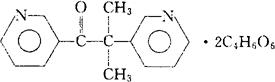 C14H14N2O·2C4H6O6=526.45 CAS-908-35-0 CAS-54-36-4(metyrapone) 2-甲基-1,2-二-3-吡啶基-1-丙酮,[R*-(R*,R*)]-2,3-二-羟丁二酸盐(1∶2)。 2-Methyl-1,2-di-3-pyridinyl-1-propanone,[R*-(R*,R*)]-2,3-dihydroxybutanedioate(1∶2). 2-甲基-1,2-二-3-吡啶基-1-丙酮酒石酸盐(1∶2)。 2-Methyl-1,2-di-3-pyridyl-1-propanone tartrate(1∶2). 诊断用药。 用于垂体功能的测定。 酒石酸双吡酮。 Metyrapone Tartrate,Su-4885,Metopirione Ditartrate. INN,USAN.