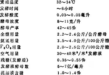 释义 | 酵母的增殖 采用编号为1321的CK-4为酵母菌种。 经过冷却后的酒糟不断流送到酵母繁殖槽中,槽中具有一定数量的种母,在加入适量的营养盐、严格控制通风量和发酵温度及酸度等工艺参数的条件下,经过6~9小时的发酵,即能繁殖大量成熟酵母。大部分酵母悬浮在上部泡沫中,随著酒糟的不断加入,连续溢至消沫槽。消沫后形成液体成熟醪. 酵母繁殖的工艺条件;