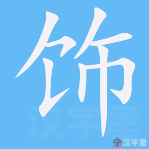 shì ❶动修整装点(身体或物体),使美观。修饰|装饰|饰物 →❷名用来装饰的东西。首饰|服饰 →❸动遮掩;伪装。文过饰非|掩饰|矫饰 →❹动扮演。在剧中饰杨贵妃|饰演 →❺动修饰(语言文字)。润饰|增饰|藻饰用法说明右边是“ ”,不是“布”。