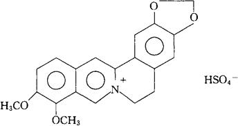 释义 | 重硫酸黄连素[中] C20H18NO4·HSO4=433.43 CAS-2086-83-1(berberine) 5,6-二氢-9,10-二甲氧基苯并(g)-1,3-苯并二氧杂环[5,6-α]喹嗪氢硫酸盐。 5,6-Dihydro-9,10-dimethoxybenzo(g)-1,3-benzodioxolo[5,6-a]quinolizine bisulfate. 抗菌药。 重硫酸小檗碱,硫酸氢黄连素。 Berberine Bisulfate,Berberine Acid Sulfate. 光明眼膏。 MI. |