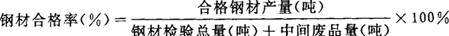 释义 | 钢材合格率 指合格钢材产量占钢材检验总量与中间废品量之和的百分比。 钢材检验总量是指轧出钢材送至检验台上的总量(包括合格品、不合格品)。不包括判定属于炼钢车间责任的轧后废品及钢材退货废品。中间废品包括加热烧坏及轧制过程中的废品。钢材合格率计算公式为: |