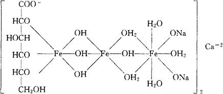 C12H44CaFe6Na4O36=1231.58 CAS-34150-62-4 五水[D-葡萄糖酸基(4-)O2,O4,O5]四-μ-羟基二羟-三高铁酸盐(3-),钙,钠(2∶1∶4)。 Pentaaqua[D-gluconato(4-)O2,O4,O5]tetra-μ-hydroxydihydroxytriferrate(3-),calcium sodium(2∶1∶4). 双-[五水[D-葡萄糖酸基(4-)]-四-μ-羟二氧代三高铁酸盐-(3-)]钙四钠。 Monocalcium tetrasodium bis-[pentaaqua[D-gluconato(4-)]-tetra-μ-hydroxydioxotriferrate-(3-)]. 抗贫血药。 铁钙钠盐。 Ferriclate Calcium Sodium,Kelfer,Kalfer. INN(Calcium Sodium Ferriclate),USAN.  |