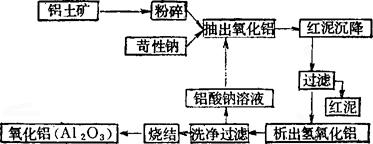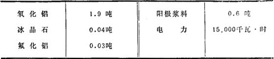 铝一般是由下面两个工艺生产出来的。 (1)氧化铝的制造工艺(精炼矾土法) 氧化铝(A12O3),可采用精炼矾土法,经过下列工艺制造出来。  (2)氧化铝电解工艺 从氧化铝生产出铝锭,根据拜耳·耶尔法原理,一般是采用电解的方法。氧化铝必须在2000℃以上的高温才能熔化,但若是加入冰晶石,在950~1000℃的温度就可以熔化了。利用这个道理,先在电炉中把冰晶石与氟化铝熔化,成为混合的熔盐(也即电解液),把氧化铝加进去熔化。然后通入直流电,于是氧化铝中的氧分子与阳极的碳元素进行化合,生成二氧化碳和一氧化碳一起逸出,铝就被分离析出。分离析出的铝,因为比重比冰晶石大,所以就沉积在电解炉底部的阴极碳棒上。 下表列出生产一吨铝,所需要的原料量。 生产一吨铝所需原料量  由上述工艺生产出的铝,叫做一次铝锭,它的纯度一般为99.0~99.90%。 |